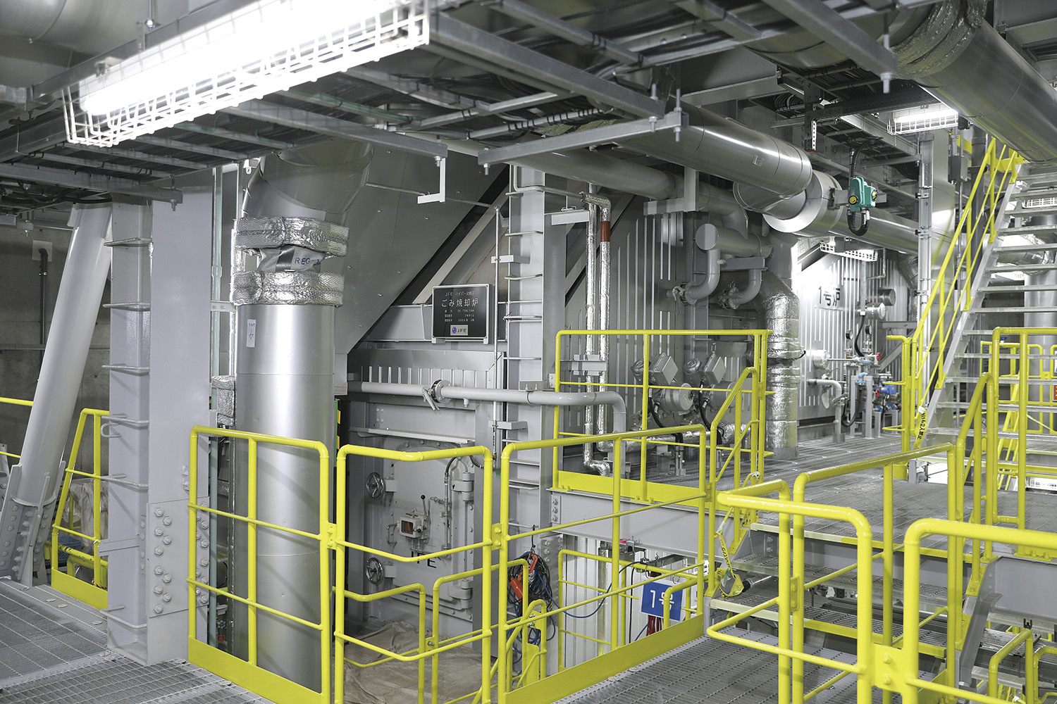 ごみの焼却により発生する熱で高温・高圧の蒸気を発生させます。