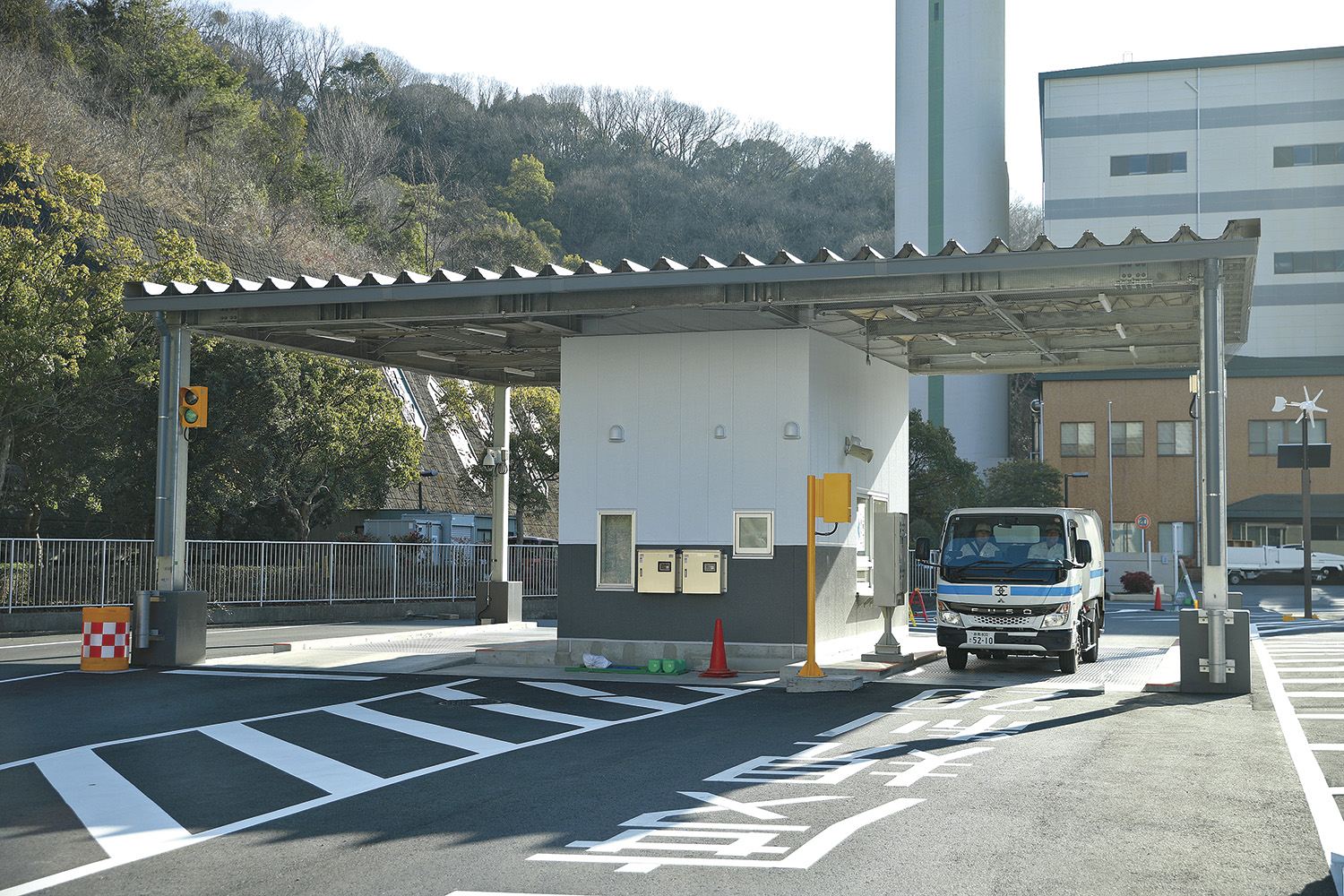 ごみ収集車で運ばれてきた可燃ごみを、この計量機で収集車ごと重さを量ります。